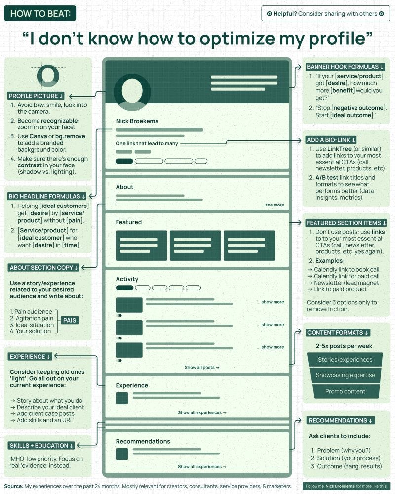 Experience: Focus on results, not tasks. Include what you’ve worked on and disregard the part about adding a story. Recruiters need keywords and context to find you on LinkedIn, so bear that in mind!